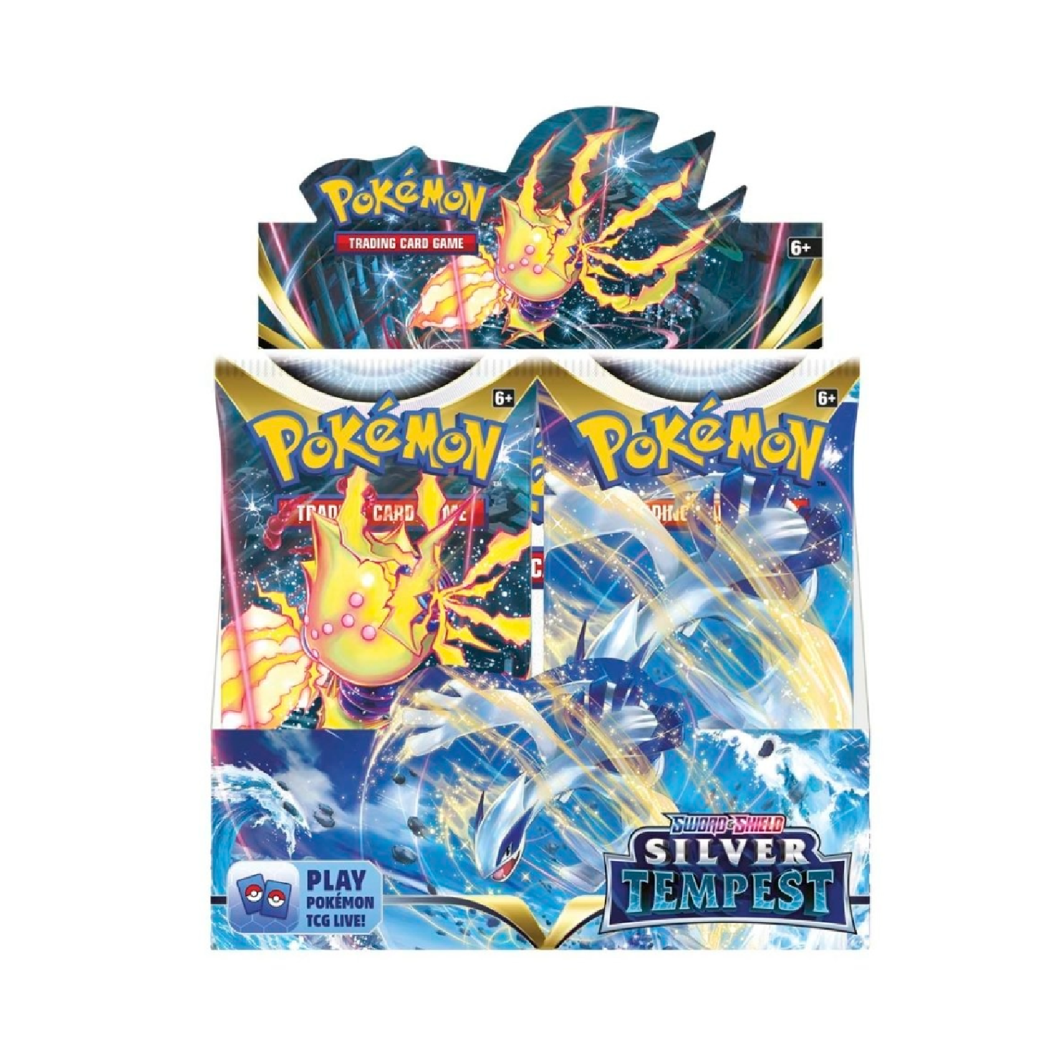 The Pokemon TCG: Silver Tempest Booster Display Box contains 36 booster packs -ideal for collectors or bulk openings.
