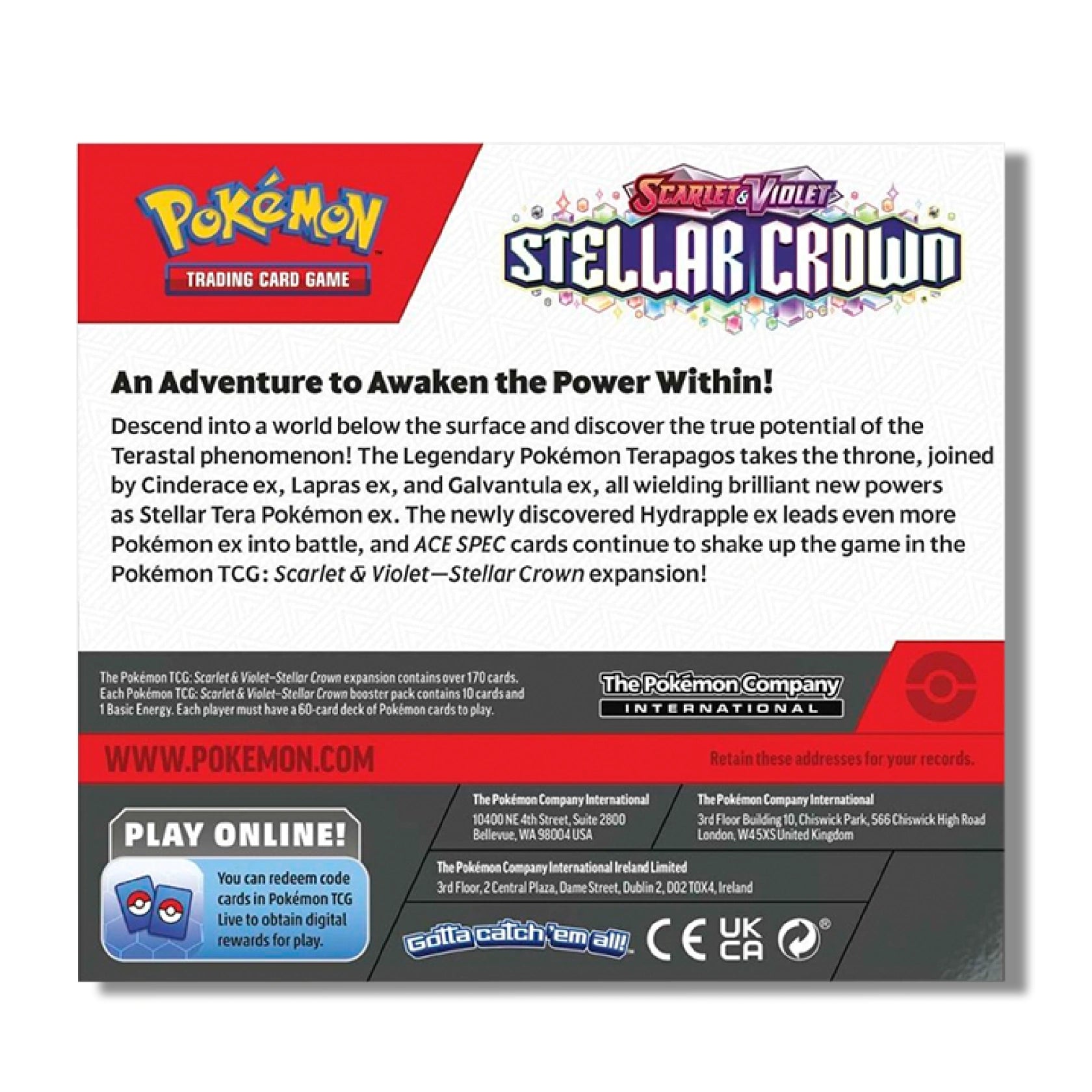 Unleash the Power of Terastal with the Pokemon TCG: Scarlet & Violet - Stellar Crown Booster Box + Elite Trainer Box Bundle!