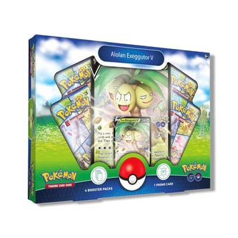Bring the mobile phenomenon to your binders with the Pokemon TCG: Pokemon GO Collection - Alolan Exeggutor V. The crossover set features in-game flair and top chases like Radiant Charizard, Mewtwo VSTAR and Dragonite VSTAR, while this box centres on an Alolan Exeggutor V promo plus a matching jumbo for display.
