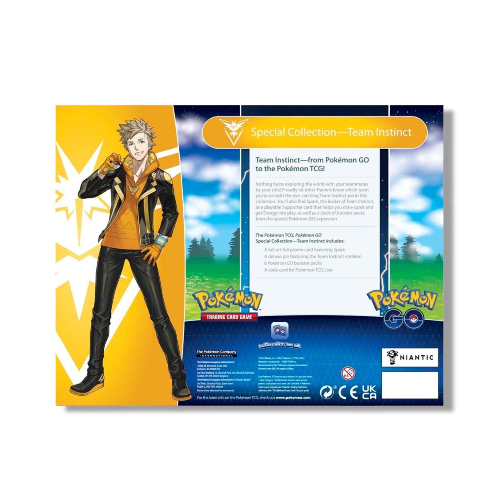 Declare allegiance with the Pokemon GO Special Collection (Team Instinct). Lead with a full-art Spark Supporter, a deluxe team pin, and six Pokemon GO booster packs.