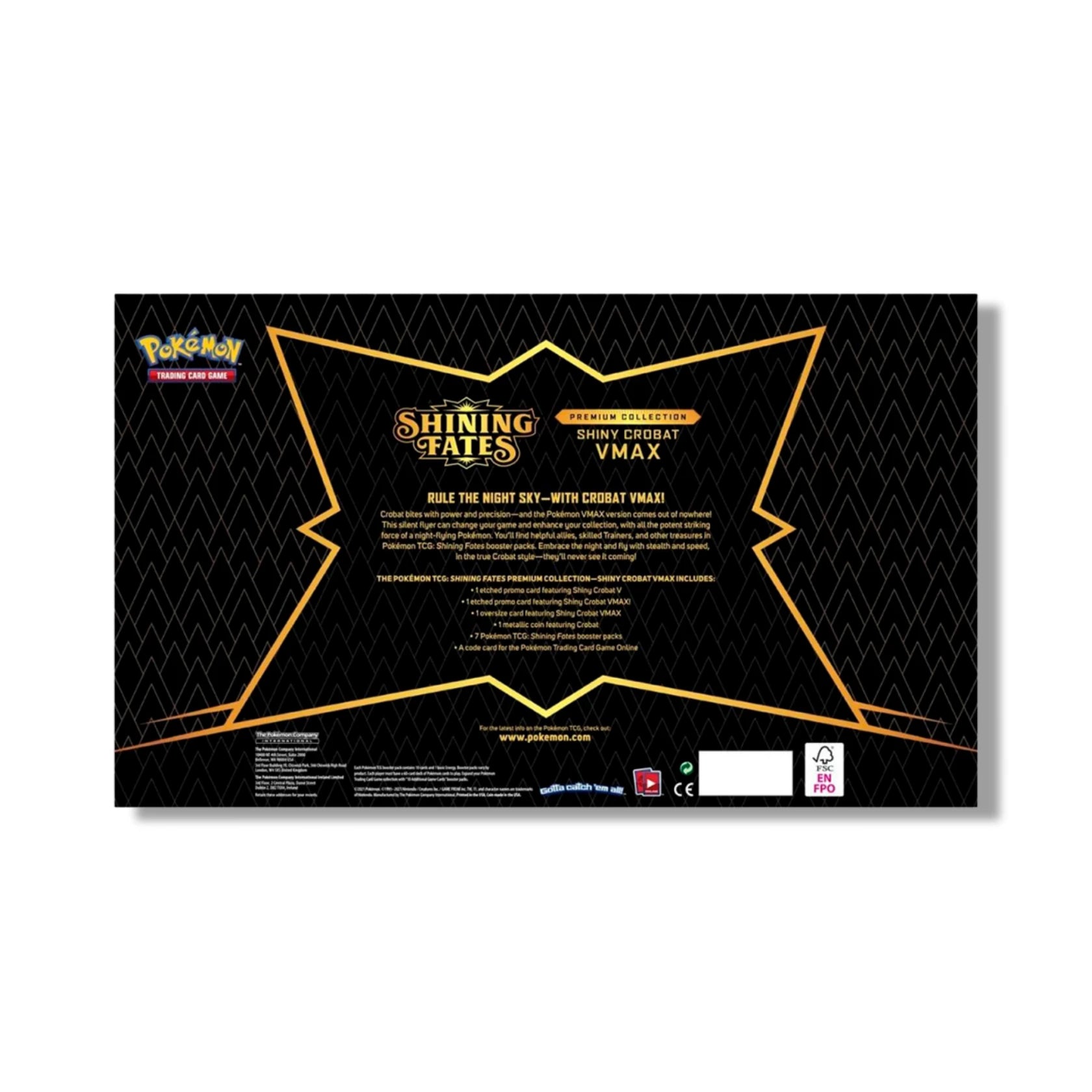 The Pokemon TCG: Shining Fates Premium Collection Shiny Crobat VMAX is packed with exclusives, including shiny Crobat V and Crobat VMAX promo cards, plus a jumbo card.
