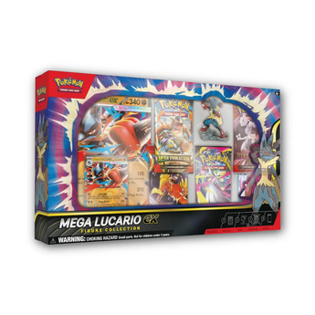 - Exclusive artwork: New-art Mega Lucario ex promo with a matching jumbo for display.