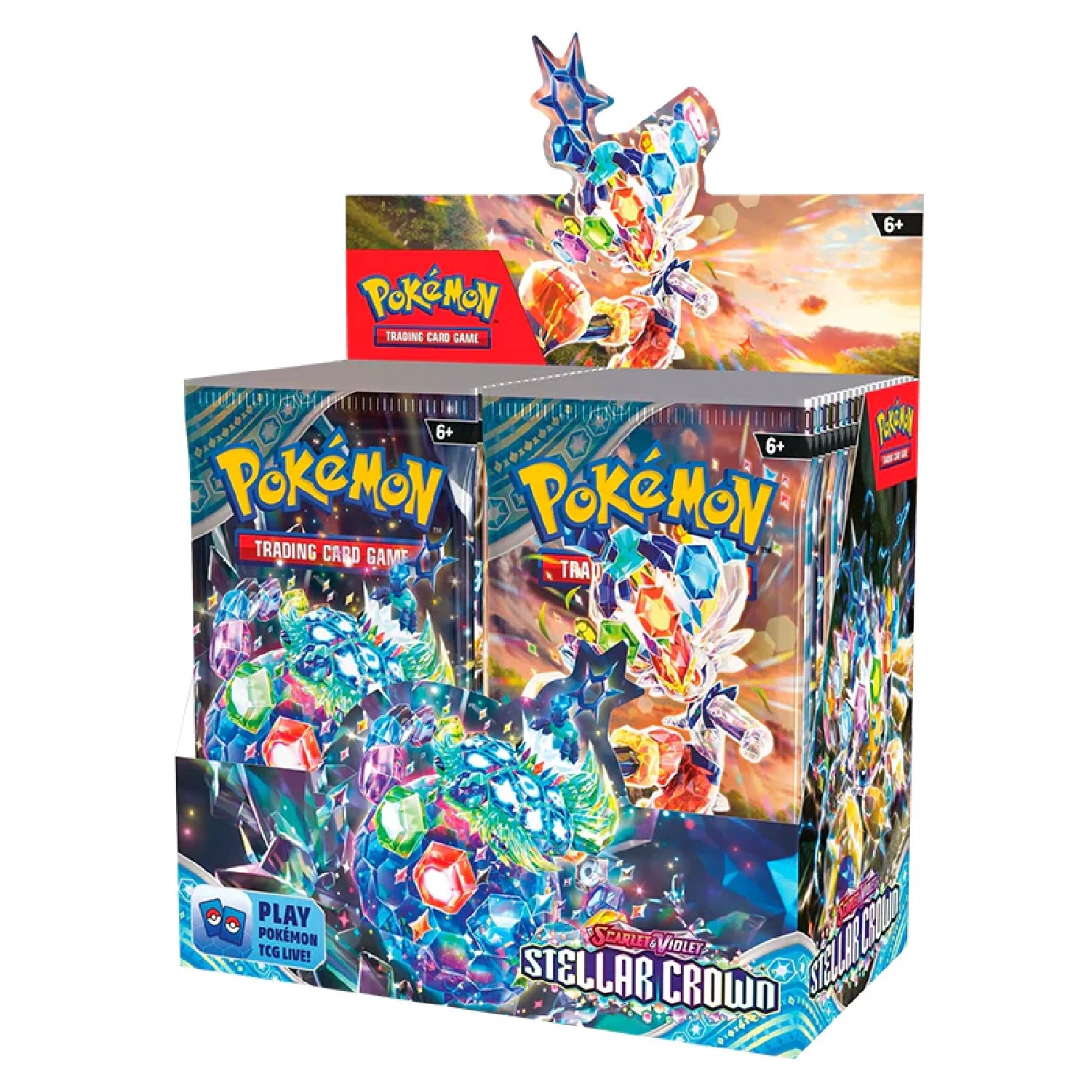 Descend into the depths and unlock the power of Terastal with the Scarlet & Violet: Stellar Crown Booster Box [Sealed Case]! This factory-sealed case includes six booster boxes, offering a total of 216 booster packs filled with rare Pokemon and powerful cards from the Stellar Crown expansion!